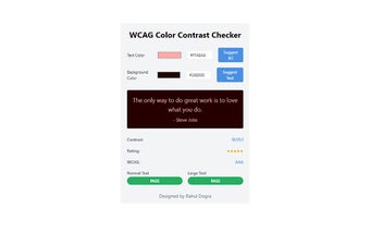 WCAG Color Contrast Checker adalah alat yang dirancang untuk membantu perancang web, pengembang, dan pencipta konten dalam memastikan pilihan warna mereka sesuai dengan Pedoman Aksesibilitas Konten Web (WCAG). Dengan fitur perhitungan kontras waktu nyata, pengguna dapat langsung melihat rasio kontras antara teks dan warna latar belakang yang dipilih. Alat ini juga memberikan umpan balik segera mengenai apakah kombinasi warna memenuhi standar WCAG untuk tingkat AA dan AAA, serta sistem penilaian visual yang memudahkan penilaian efektivitas pilihan warna.